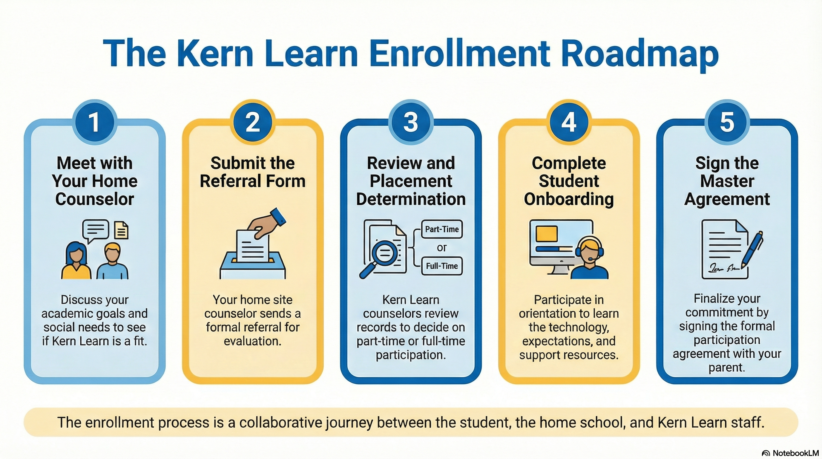 Kern High School District’s mission is to ensure all students graduate prepared for college and careers. Kern Learn supports this by offering a flexible, blended learning program that combines online instruction with in-person support from highly qualified teachers.